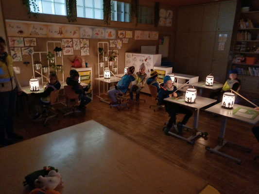 Mit viel Kreativität, Geduld und Feuereifer gestalteten die Kinder des Kindergartens und der 1.+2. Klasse ihre Laternen für den Umzug.