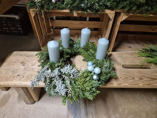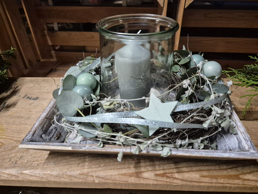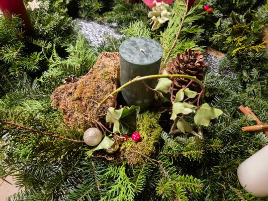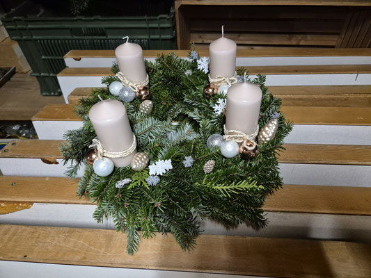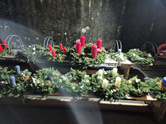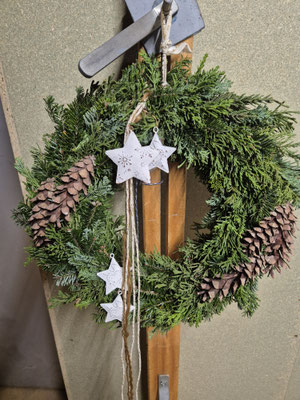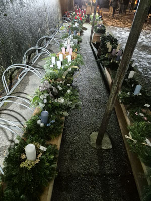 Gestecke, Kränze, winterliche Dekorationen, Backwaren, Punch, warme Waffeln und leckere Pizzas locken unsere Gäste an.