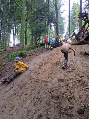 verwandelten die Jüngeren den aufgeweichten Waldboden kurzerhand in eine